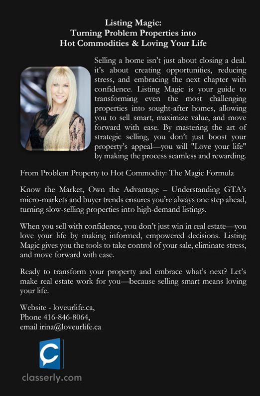 Irina Marchenkova is a premier real estate agent based in Toronto, Ontario. With a focus on personalized service and client satisfaction, we strive to exceed expectations in every transaction. Our team of experienced professionals is dedicated to helping clients achieve their real estate goals with confidence and peace of mind.